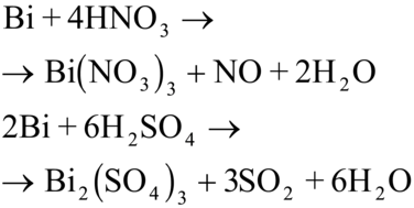 La maggior parte del bismuto è stata ottenuta come sottoprodotto nella lavorazione dei minerali che lo contengono come impurezza; la sua metallurgia si identifica con la separazione dal piombo: infatti, nella lavorazione dei minerali di rame, durante i successivi trattamenti di purificazione, il bismuto rimane legato al piombo, anch'esso presente come impurezza; analogamente, durante tutti gli stadi di lavorazione dei minerali di piombo, il bismuto rimane legato a questo. I metodi più usati di debismutazione del piombo sono: il processo di cristallizzazione frazionata della lega piombo-bismuto e l'elettrolisi della lega condotta con particolari accorgimenti. La raffinazione del bismuto greggio così ottenuto viene condotta trattando dapprima il metallo fuso con idrossido di sodio, col quale si allontanano le impurezze acide; per lento raffreddamento si eliminano poi le scorie contenenti il rame e, successivamente, con la quantità calcolata di zinco si lega l'argento presente asportandolo sotto forma di schiuma. Dopo la disargentazione restano tracce di piombo e zinco che vengono trasformate in cloruri da una corrente di cloro a 500 ºC e allontanate. Si ottiene così bismuto al 99,99%. Il bismuto allo stato puro è un metallo fragile, tenero, lucente, di colore argenteo leggermente rossiccio che in aria umida si ossida rapidamente, mentre è stabile in atmosfera perfettamente secca; fonde a 271,3 ºC. Allo stato solido il bismuto presenta una resistenza elettrica circa doppia di quella che esso ha allo stato liquido; gli altri metalli invece si comportano solitamente in modo opposto. Come l'acqua, il gallio e l'antimonio, il bismuto è una delle poche sostanze che, passando dallo stato liquido a quello solido, aumentano di volume. Il bismuto è praticamente inerte all'acido cloridrico; l'acido nitrico lo attacca sviluppando vapori nitrosi e formando nitrato di bismuto; con l'acido solforico a caldo si trasforma in solfato svolgendo biossido di zolfo: