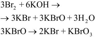 Riscaldati a secco oltre i 300 ºC i bromati a loro volta si decompongono in bromuro e ossigeno: