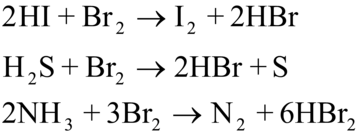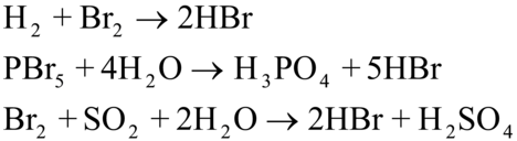 Come il cloro e lo iodio, gli altri due alogeni tra i quali può considerarsi intermedio anche dal punto di vista chimico, il bromo si comporta esclusivamente da monovalente nei confronti dell'idrogeno e degli elementi metallici, mentre con l'ossigeno dà luogo a composti a valenza diversa. Con l'idrogeno il bromo forma quindi il composto di formula HBr, l'acido bromidrico o, secondo la moderna nomenclatura chimica, bromuro di idrogeno. Questo si ottiene per combinazione diretta dei due elementi a una temperatura di ca. 400 ºC, più opportunamente su catalizzatori quali per esempio la pomice platinata; altri metodi utilizzano la reazione con acqua del pentabromuro di fosforo, PBr5, ottenuto da bromo e fosforo, ovvero la reazione del bromo con una soluzione acquosa di biossido di zolfo: