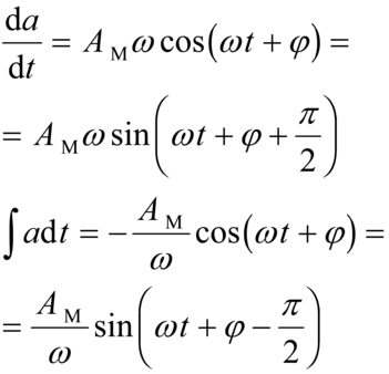 La derivata rispetto al tempo di una funzione sinusoidale di ampiezza AM e pulsazione ω è perciò una funzione sinusoidale di ampiezza AMω e pulsazione ω, sfasata in anticipo di