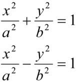 rappresentano, rispettivamente, un'ellisse, un'ellisse a punti immaginari, una iperbole, una parabola. Questa è la classificazione affine delle coniche, cioè la divisione in classi di coniche trasformabili l'una nell'altra mediante trasformazioni affini; le equazioni diconsi equazioni canoniche affini. Se si fissa, invece, nel piano euclideo un sistema di coordinate cartesiane ortogonali e si assumono come assi cartesiani gli assi di una conica, cioè i diametri coniugati perpendicolari fra loro, si hanno per l'ellisse e la iperbole le seguenti equazioni canoniche: