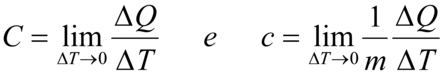 è allora, per definizione di caloria, uguale a una caloria al grammo al grado celsius (1 cal/g∤ºC). Tra calore specifico e capacità termica esiste quindi la relazione C=c∤m, in cui m è la massa del corpo, e per questa ragione si parla talvolta, anziché di capacità termica di un corpo, di equivalente in acqua di quel corpo, misurato in grammi, alla temperatura di 15 ºC. Nel sistema inglese il calore specifico si misura in BTU/libbra∤ºF e, per una stessa sostanza, le due misure sono espresse dallo stesso numero. Più rigorosamente, le definizioni di capacità termica e di calore specifico devono essere date considerando infinitamente piccolo l'intervallo di variazione della temperatura: