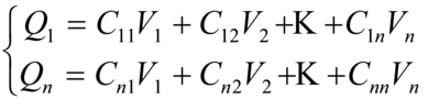 Per n=1 il sistema di conduttori è costituito da un conduttore isolato; per n=2 il sistema è costituito da due conduttori e prende il nome di condensatore. Le capacità mutue per un sistema di conduttori sono rappresentate mediante una rete equivalente di condensatori, indicati con il simbolo ⊣ ⊢ "Per la figura 2 vedi pag. 371 del 5° volume." . "Per la figura 2 vedi il lemma del 5° volume." § La capacità di un sistema di due conduttori può essere pensata come la capacità risultante delle capacità pertinenti alle tante coppie di elementi di superficie infinitesima in cui possono immaginarsi scomposte le superfici dei due conduttori "Per la figura 3 vedi pag. 371 del 5° volume." . "Per la figura 3 vedi il lemma del 5° volume." Si parla allora di capacità distribuita, concetto molto utile quando i potenziali varino nel tempo; in tal caso il potenziale non potrà considerarsi lo stesso in tutti i punti di una superficie. Per esempio, nelle linee di trasmissione di energia elettrica, la capacità tra linea e terra deve essere considerata distribuita su tutta l'estensione della linea per tener conto del fatto che il potenziale varia lungo tutta la linea; per contrapposizione, si parla di capacità concentrata quando la capacità può immaginarsi tutta localizzata in un elemento capacitivo, ovvero un condensatore. § Un effetto che ha luogo in tutti gli apparecchi elettrici ed elettronici è quello della capacità parassita, cioè di una capacità presente tra gli elementi in tensione dell'apparecchio e la sua carcassa, oppure tra la carcassa e la terra. Le capacità parassite provocano effetti che se non sono previsti o neutralizzati pregiudicano il regolare funzionamento dell'apparecchio stesso. Per esempio, per evitare che la carcassa raggiunga potenziali troppo alti, essa deve essere collegata elettricamente a terra "Per la figura 4 vedi pag. 371 del 5° volume." "Per la figura 4 vedi il lemma del 5° volume." .