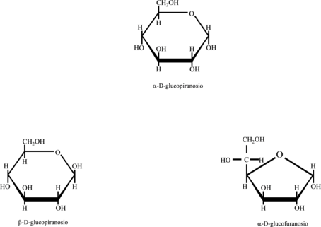 L'equilibrio tra la forma carbonilica e la forma semiacetalica è molto spostato verso quest'ultima; ciò spiega perché gli zuccheri non diano alcune reazioni tipiche delle aldeidi e dei chetoni pur possedendo tali gruppi funzionali. Va inoltre rilevato che, in seguito alla formazione del semiacetale ciclico, l'atomo di carbonio carbonilico diventa asimmetrico: esistono pertanto due semiacetali isomeri, chiamati α e β, aventi opposto potere rotatorio e diversa disposizione spaziale attorno al suddetto atomo di carbonio. Si deve a Haworth e a Irvine la dimostrazione che, oltre che nelle forme α- e β-semiacetaliche, gli zuccheri esistono anche in forma γ e δ. Tali forme risultano più stabili e sono più comuni delle prime. I γ- e δ-semiacetali vengono chiamati furanosi e piranosi rispettivamente, potendo essere rappresentati con l'anello pentatomico del furano (γ-semiacetali) o con l'anello esatomico del pirano (δ-semiacetali):