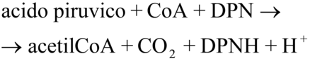 Ordinariamente tale reazione avviene nei tessuti isolati che lavorano in anaerobiosi, nel rene, negli eritrociti, nei leucociti, nella mucosa gastrica, in parte nel cervello e nel midollo osseo e nei muscoli affaticati. § Catabolismo del G-6-P attraverso lo shunt esoso-monofosfatico. Tale via metabolica è seguita nel fegato e nei globuli rossi. "Per la figura 3 vedi il lemma del 5° volume." "Vedi fig. 3 vol. V, pag. 424" § Ciclo di Krebs. L'acido piruvico formato nel corso della glicolisi può essere convertito in acido lattico, come detto in precedenza, o utilizzato nella sintesi di amminoacidi (alanina), oppure trasformato nel ciclo di Krebs. Quest'ultima possibilità si realizza, in condizioni di aerobiosi, previa decarbossilazione ossidativa dell'acido con formazione di acetil-Coenzima A e CO₂. Schematicamente: