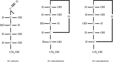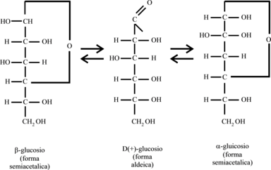 Tali formule, pur permettendo l'indicazione dell'attività ottica e della configurazione spaziale, poco si prestano tuttavia all'interpretazione di alcune loro proprietà chimiche e fisiche. Gli aldosi, per esempio, non danno la reazione di Schiff e non reagiscono con bisolfito sodico, come avviene invece per i composti aventi il gruppo carbonilico libero. Tutti gli zuccheri inoltre presentano il fenomeno della mutarotazione o polirotazione: cioè, sciolti in acqua, possiedono un determinato potere rotatorio specifico che cambia gradualmente fino a raggiungere un valore finale che in seguito resta costante. La mutarotazione è dovuta allo stabilirsi di un equilibrio tra due diverse forme dello zucchero in soluzione, il quale, per spontanea reazione tra il gruppo carbonilico e uno degli ossidrili alcolici, acquista la struttura di semiacetale ciclico: