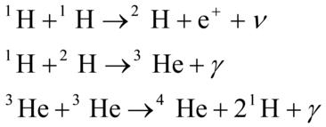 Il simbolo ¹H indica il nucleo d'idrogeno, cioè il protone, p; il simbolo ²H indica il nucleo del deuterio e 3He e 4He indicano i nuclei di elio 3 ed elio 4.
