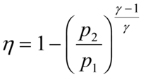 dove p₁ e p₂ sono le pressioni all'inizio e al termine della fase di compressione e γ è il rapporto tra i calori specifici a pressione e a volume costante del fluido termodinamico.