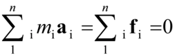 , in cui il sim- bolo div indica l'operatore divergenza e v è la velocità del punto racchiuso nell'elemento dτ; questa equazione è anche detta equazione di continuità. B) Conservazione del risultante e del momento delle forze. In un sistema isolato i punti Pi sono soggetti a sole forze interne fij, corrispondenti alla forza esercitata dal punto Pi sul punto Pi; per la legge di azione e reazione queste sono a due a due di verso opposto, uguali in modulo e sulla stessa retta di azione: il loro risultante, R, sarà quindi nullo e di conseguenza lo sarà anche il loro momento, M, rispetto a un punto qualsiasi. Per un sistema isolato si ha, pertanto: R=0, M=0. C) Conservazione della quantità di moto. In base alla legge fondamentale della dinamica a ogni forza fi, risultante di tutte le forze interne agenti sul punto Pi, di massa mi, corrisponde un'accelerazione ai; dato che, in base al teorema precedente, il risultante delle forze interne è nullo, si ha: