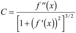 Se si pensa la curva C descritta da un punto mobile con velocità (scalare) unitaria, si può dire, intuitivamente, che la curvatura di una curva in un punto P misura la velocità di deviazione angolare della tangente alla curva nel punto P. Le linee a curvatura nulla in ogni punto sono le rette. Se y=f(x) è l'equazione cartesiana della curva, la curvatura è data da: