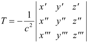 in cui gli elementi del determinante sono le derivate prime, seconde e terze di x, y e z. Le curve a flessione nulla sono rette; le curve a torsione nulla sono curve piane. Per una superficie si considerano i piani passanti per la normale alla superficie nel punto P considerato: tali piani tagliano sulla superficie delle curve, dette sezioni normali; le sezioni normali a cui compete la curvatura massima e la curvatura minima sono dette sezioni principali e risultano tra loro perpendicolari. La curvatura della superficie nel punto P è espressa in funzione delle sezioni principali in tale punto: è detta curvatura totale, o curvatura di Gauss, l'espressione CG=c₁∤c₂ introdotta da Gauss nel 1828; è detta curvatura media l'espressione
