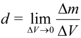 , in cui m è la massa contenuta nell'elemento di volume ΔV al quale è interno il punto considerato. La massa volumica è pertanto la derivata della massa rispetto al volume: d=dm/dV. Analogamente la massa areica e la massa lineica devono essere definite come le derivate della massa rispetto alla superficie e rispetto alla linea sulle quali è distribuita.