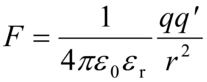 dove F è la forza che si esercita nel vuoto fra due cariche elettriche q, q´ poste alla distanza r. La costante dielettrica relativa di un dato dielettrico è la grandezza εr che compare nella legge di Coulomb nel caso in cui le cariche siano immerse in tale dielettrico: