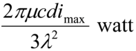 in cui μ è la permeabilità magnetica del mezzo, c la velocità di propagazione delle onde elettromagnetiche, d la distanza tra le cariche nel dipolo, imax il valore massimo della corrente elettrica lungo l'asse del dipolo e λ la lunghezza dell'onda irradiata, corrispondente alla frequenza di oscillazione delle cariche.