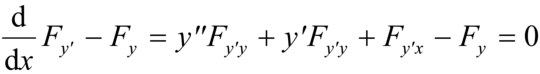 che, simbolicamente, si può scrivere [F]=0, dove il primo membro è detto derivata variazionale di F rispetto a y. Il ruolo di questa derivata è analogo a quello del gradiente per gli ordinari problemi di massimo e di minimo. Ogni y=y(x) soluzione della suddetta equazione di Eulero è pertanto una funzione estremale. Con procedimenti analoghi si ottiene per un dato funzionale, dipendente da più funzioni, un sistema di equazioni differenziali del secondo ordine che fornisce le condizioni necessarie, ma non sempre sufficienti, cui devono soddisfare le funzioni incognite per essere estremali del funzionale assegnato.