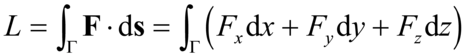 Se F è una forza qualunque, in generale non costante, applicata a un punto P e G la traiettoria percorsa dal punto P, con estremi A e B, si definisce lavoro della forza F da A a B lungo la linea G la somma dei lavori elementari della forza F per gli spostamenti infinitesimi ds compiuti da P, cioè: