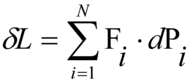 dove δPi indica lo spostamento subito dal generico punto Pi. Il lavoro virtuale non deve essere confuso con il lavoro elementare, la cui definizione è formalmente analoga; perciò si usa il simbolo differenziale δ, diverso da quello utilizzato per esprimere il lavoro elementare:quest'ultimo è legato all'effettivo moto dei punti del sistema, mentre quello virtuale viene riferito a uno spostamento geometrico, che spesso è puramente ipotetico.