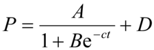 , in cui B e c sono costanti sperimentali positive e D è il livello minimo della popolazione.