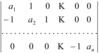 Se gli a sono tutti uguali a 1 il continuante, per n=1, 2,..., fornisce una successione di numeri interi, detta successione di Fibonacci. Per altri determinanti di interesse generale, per esempio hessiano, di Jacobi (o funzionale), secolare, di Vandermonde, wronskiano, ecc., si vedano le singole voci.