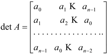 dove ε1, ε2,..., ε sono le radici n-esime dell'unità e f(x)=a0+a1x+...+a-1x-1. Il secondo è del tipo