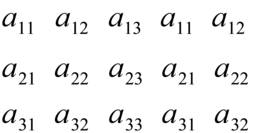 Il numero 2 si trova sulla prima riga e sulla prima colonna della matrice; si dice allora che 2 è l'elemento di posto (1, 1). In generale, il numero che si trova nella i-sima riga e nella j-sima colonna di una matrice si dice elemento di posto (i,j) della matrice. Per esempio, il numero 3 è l'elemento di posto (1, 3) della matrice data sopra. Di solito le matrici vengono indicate con lettere maiuscole. In una matrice A di tipo (m, n) l'elemento di posto (i,j) viene indicato con il simbolo a. Quindi una matrice di tipo (m, n) viene indicata nel modo seguente: