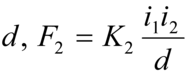 , e nella legge di Laplace che esprime la forza che si esercita tra due conduttori paralleli percorsi dalle correnti i₁ e i (articolo) e posti a distanza