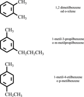 Per gli idrocarburi aromatici fondamentali si conservano i vecchi nomi di fantasia; i nomi dei termini derivati dai fondamentali per sostituzione di uno o più atomi di idrogeno con catene alifatiche si ottengono premettendo a quello del sistema aromatico fondamentale la denominazione delle catene preceduta da indicazioni atte a stabilirne la reciproca posizione quando le catene siano due o più. Per i derivati disostituiti del benzene al posto delle coppie di numeri 1,2-, 1,3-, 1,4-si possono usare rispettivamente le lettere o (orto), m (meta), p (para).