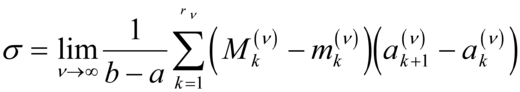 dove a(ν) rappresenta i punti di suddivisione di una successione convergente di partizioni, e su f si suppone che sia limitata nell'intervallo nel quale esistono gli estremi superiori M(ν) e gli estremi inferiori m(ν) L'annullarsi dell'oscillazione media è condizione necessaria e sufficiente per l'esistenza dell'integrale definito di f nell'intervallo [a, b].