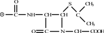 sf. [sec. XX; dal genere Penicillium+-ina]. Nome generico di vari antibiotici la cui struttura deriva dal nucleo di un dipeptide ciclico, l'acido 6-amminopenicillanico, e con formula generale: