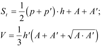 cui p´ è il perimetro della base superiore del tronco, h´ la distanza di tale base dal vertice e A´ la sua area.