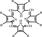 sf. [sec. XX; dal greco porphýra, porpora+-ina]. Gruppo di pigmenti la cui struttura fondamentale è costituita da quattro nuclei pirrolici collegati tra loro da gruppi metinici (–CH=). Le porfirine sono largamente diffuse nel regno animale e vegetale, rientrando in tale categoria la clorofilla e il gruppo eme, cofattore caratteristico delle emoproteine, quali l'emoglobina, i citocromi, la catalasi la perossidasi. In diverse porfirine gli atomi di azoto di ciascun anello pirrolico sono legati a un atomo di un metallo, che può essere il ferro o il magnesio, come si osserva rispettivamente nell'emoglobina e nella clorofilla. Tutte le porfirine naturali hanno la struttura generale sotto riportata, differendo tra loro per il numero, la natura e la posizione dei sostituenti –R.