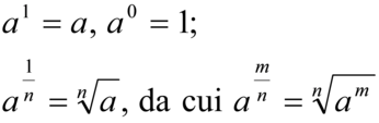 ; la definizione di potenza si completa ponendo a¹=a, a0=1;