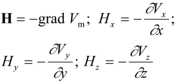 dove Hx, Hy, Hz sono rispettivamente le componenti di H secondo i tre assi x, y, z. Va osservato che il carattere conservativo del campo magnetico, per il quale è nulla la circuitazione lungo una linea chiusa, nel caso del campo creato da conduttori percorsi da corrente vale solo se la linea chiusa non è attraversata dai conduttori. In caso contrario la circuitazione è pari alla somma delle correnti.