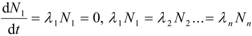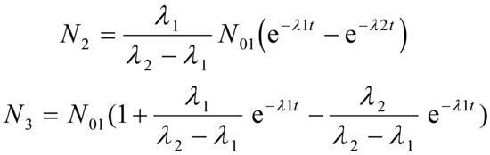 per il caso speciale in cui N₂=N₃=0 al tempo t=0. L'esempio può essere esteso a un numero qualunque di nuclidi. Il termine equilibrio radioattivo è spesso usato per esprimere la condizione che la derivata di una funzione dinamica rispetto al tempo è uguale a zero. Quando la condizione è applicata ai membri di una catena radioattiva significa che i termini