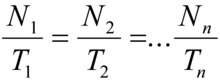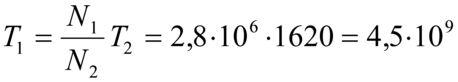 . La relazione può essere usata per determinare T per nuclidi con periodo di dimezzamento molto lungo. Nel caso dell'uranio (I) in equilibrio secolare risulta per ogni 2,8∤106 atomi di uranio un atomo di radio; denotando uranio con N₁ e radio con N₂ e conoscendo per misura diretta il periodo di dimezzamento del radio T₂ che è di 1620 anni, risulta