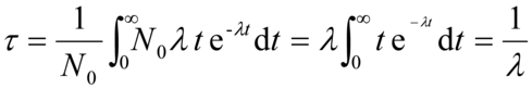 . Infine, la vita media, terzo parametro caratteristico, comunemente denotato con τ, è data dalla somma dei tempi di esistenza di tutti gli atomi divisa per il loro numero iniziale, N0. Matematicamente, essendo N il numero degli atomi esistenti al tempo t uguale a N0 e-λ e poiché ogni singolo atomo può avere statisticamente vita da 0 a ∞, sarà: