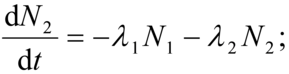L'attività di N₁ è conforme alla legge già illustrata, l'attività di N₂ è data dalla differenza tra la velocità (λ₁N₁) con cui si formano i nuclidi N₂ e la velocità (λ₂ N₂) con cui questi si disintegrano e cioè:
