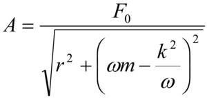 Sia dato un sistema meccanico costituito da una massa puntiforme m soggetta a una forza di tipo elastico F=F0 sinωt, in cui ω è la pulsazione e t il tempo. La forza sia esercitata da una molla di costante k² e la massa si muova in un mezzo di resistenzar: allora l'ampiezza di oscillazione è data dalla relazione: