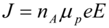 Anche nel caso dei semiconduttori di tipo p si può ritenere che la conduzione elettrica sia determinata essenzialmente da un solo tipo di portatore (in questo caso lacune) e che la concentrazione di tale portatore sia praticamente eguale, nelle normali condizioni di temperatura, a quella nA degli atomi accettori. Nei semiconduttori di tipo p la densità di corrente J è quindi espressa approssimativamente dalla relazione