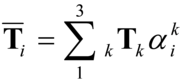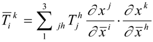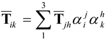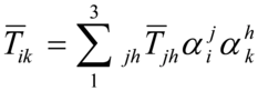dove αi sono i coseni direttori di una terna rispetto all'altra. Il tensore viene analogamente definito matematicamente come l'ente che è individuato in un riferimento cartesiano x₁, x₂, x₃ da tre vettori T₁, T₂, T₃, i quali passando al sistema di riferimento x₁, x₂, x₃ si trasformano secondo la legge