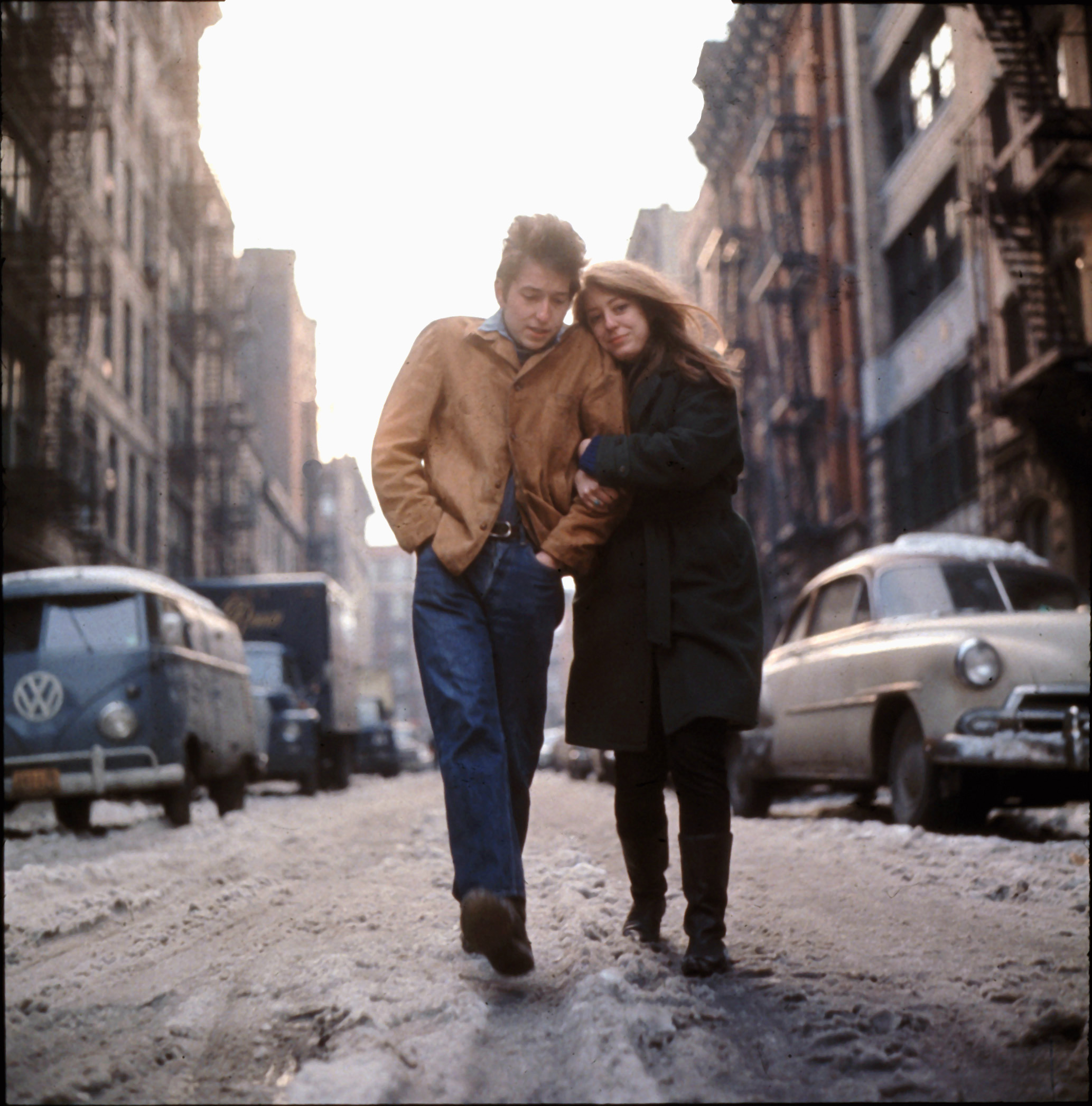 cantautore di Duluth, che lo ritrae mentre passeggia tenendo a braccetto Suze Rotolo, la sua fidanzata dell’epoca, lungo una strada innevata. La foto fu scattata all’angolo tra Jones Street e la West 4th Street nel Greenwich Village, a New York, non lontano da dove viveva la coppia.
