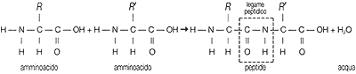 Le proteine sono composti a elevata massa molecolare che derivano dall'unione di un numero molto elevato di molecole di amminoacidi. L'enorme varietà di proteine esistenti è dovuta all'elevato numero di possibili combinazioni tra la ventina di amminoacidi naturali (v. tab. 20.2). Gli amminoacidi si uniscono |l'un l'altro attraverso la formazione di un legame peptidico tra l'azoto del gruppo amminico di una molecola e il carbonio del gruppo carbossilico di un'altra, con eliminazione di una molecola d'acqua (reazione di condensazione).