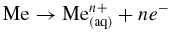 Un metallo (Me) che viene immerso in una soluzione di un suo sale (contenente quindi suoi ioni positivi) manifesta una sua propria tendenza a passare in soluzione trasformandosi esso stesso in ione positivo, Men+: