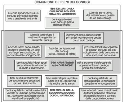 a) comunione dei beni cc 159: è il regime legale ordinario, che opera sempre, qualora le parti non abbiano stabilito diversamente; è dunque derogabile e riguarda esclusivamente i beni acquistati durante il matrimonio;