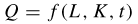 La funzione di produzione è un'espressione matematica che descrive la relazione tra il prodotto (output) e i fattori di produzione (input) necessari a produrlo. Per semplificare, i fattori di produzione sono ridotti a due: il capitale e il lavoro. Un'espressione generica di funzione di produzione potrebbe essere, per esempio,