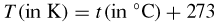 per cui, per esempio, 0 °C corrisponde a 273 K e 20 °C corrisponde a 293 K.
