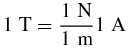 L'unità di misura dell'intensità del campo magnetico nel Sistema Internazionale è il tesla (simbolo T). Si dice che un campo magnetico ha intensità di 1 tesla quando esercita una forza di 1 newton su un filo conduttore della lunghezza di 1 m percorso da una corrente di 1 ampere: