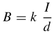 L'intensità del campo magnetico generato da un filo rettilineo percorso da una corrente di intensità I è inversamente proporzionale alla distanza d dal conduttore e direttamente proporzionale alla corrente: