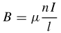 All'interno di un solenoide il campo magnetico è uniforme e si può dimostrare che la sua intensità è direttamente proporzionale al numero di spire n che compongono il solenoide, all'intensità di corrente I che percorre il solenoide e inversamente proporzionale alla lunghezza l del solenoide: