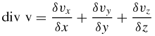 La divergenza è un operatore che fa corrispondere a un vettore una quantità scalare, data dalla somma delle tre derivate parziali delle tre componenti del vettore lungo le direzioni x, y e z. In simboli, se il vettore è indicato con v, ha componenti rispettivamente v